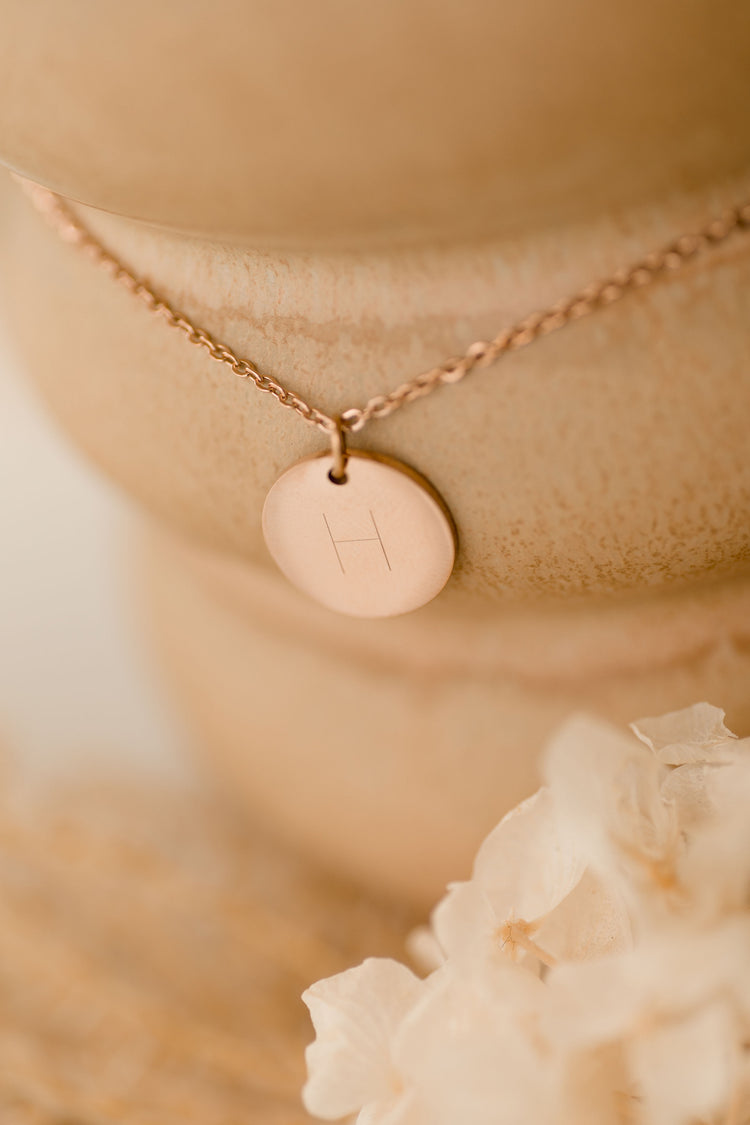 Farbe des Plättchens (Gold, Silber oder Roségold) bitte bei der Bestellung mit angeben.