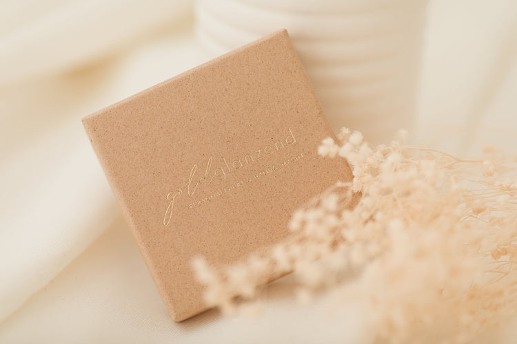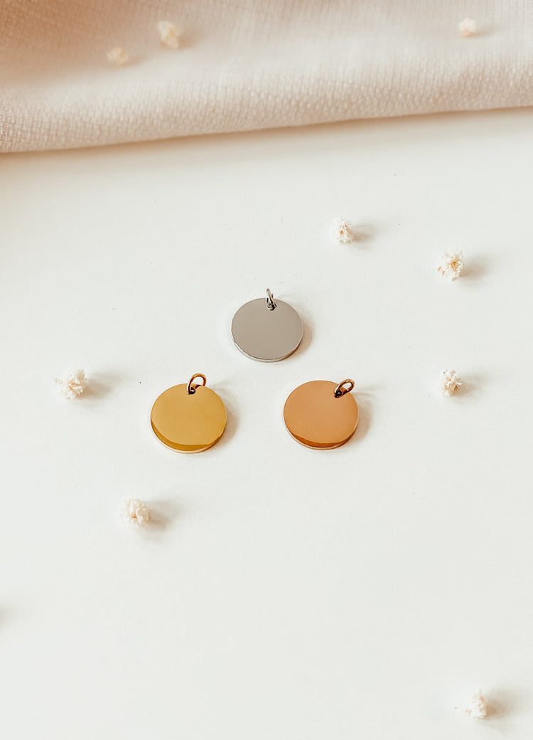 Farbe des Plättchens (Gold, Silber oder Roségold) bitte bei der Bestellung mit angeben.